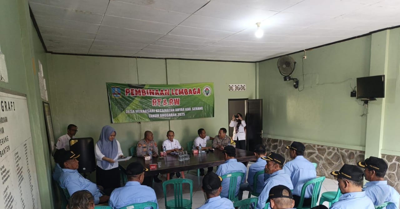Kapolres Cilegon Polda Banten AKBP Dr. Martua Raja Taripar Laut Silitonga melalui Kapolsek Anyar IPTU Iwan Sofiyan Kegiatan pembinaan tersebut bertujuan untuk meningkatkan kapasitas, koordinasi, dan fungsi pelayanan para pengurus RT dan RW dalam mendukung pembangunan serta menciptakan lingkungan masyarakat yang tertib, aman, dan harmonis.