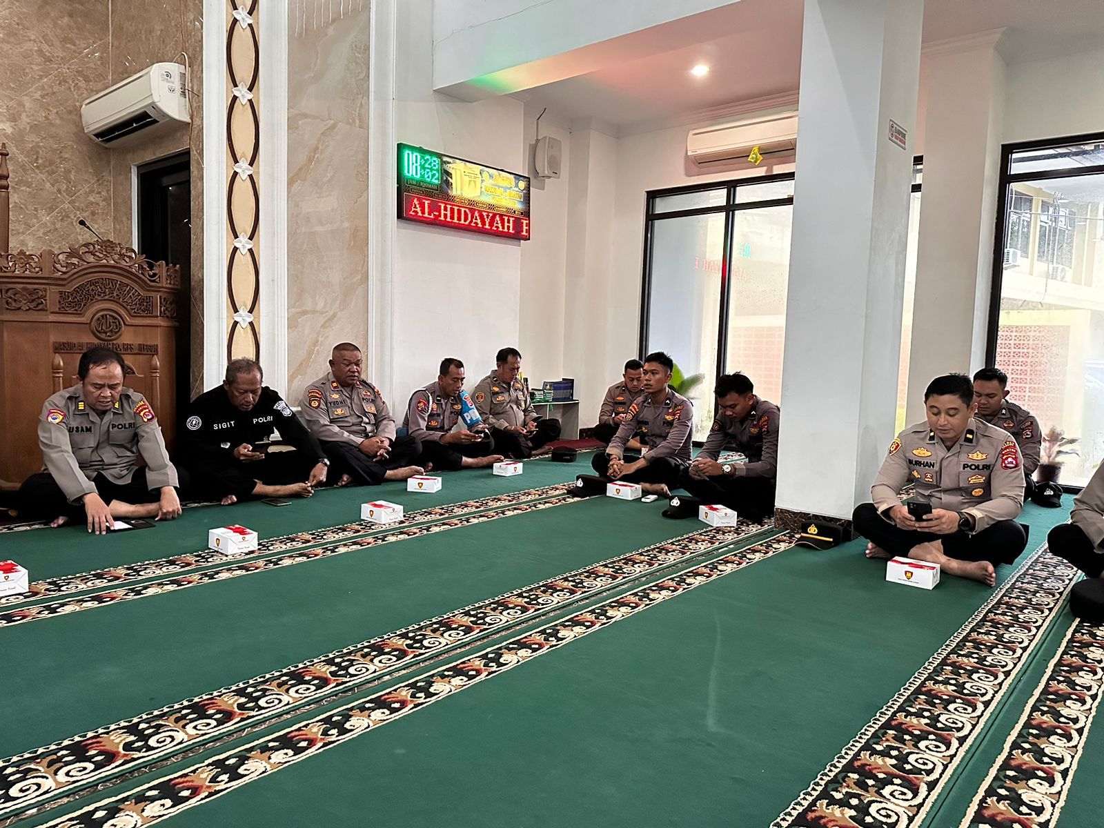 Cilegon,Polres Cilegon Polda Banten Pada Kamis/27/11/2025 Pukul 08.30 Wib, Personil Siwas Polres Cilegon, Kasiwas Polres Cilegon Beserta anggota Mengikuti kegiatan Pengajian Rutin setiap Hari kamis yang di laksnakan di masjid al-Hidayah Polres Cilegon.