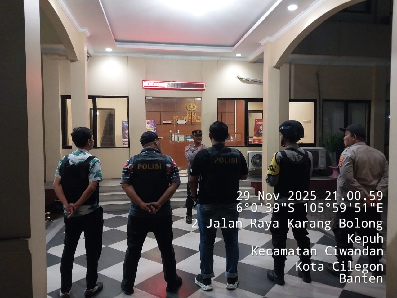 Cilegon - Personil Polsek Ciwandan Polres Cilegon Polda Banten menggelar apel malam Persiapan Patroli yang dipimpin Oleh Pawas Polsek Ciwandan Yang Bertugas Pada Hari Itu, Sabtu (29/11/2025)