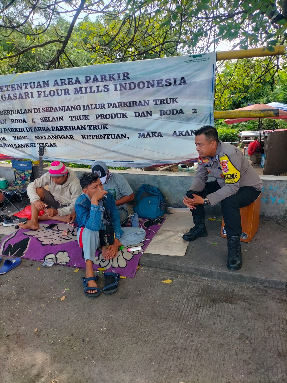 Jalin Silaturahmi, Bhabinkamtibmas Pelabuhan Polsek Kawasan Pelabuhan Banten berbincang ke Buruh Pelabuhan