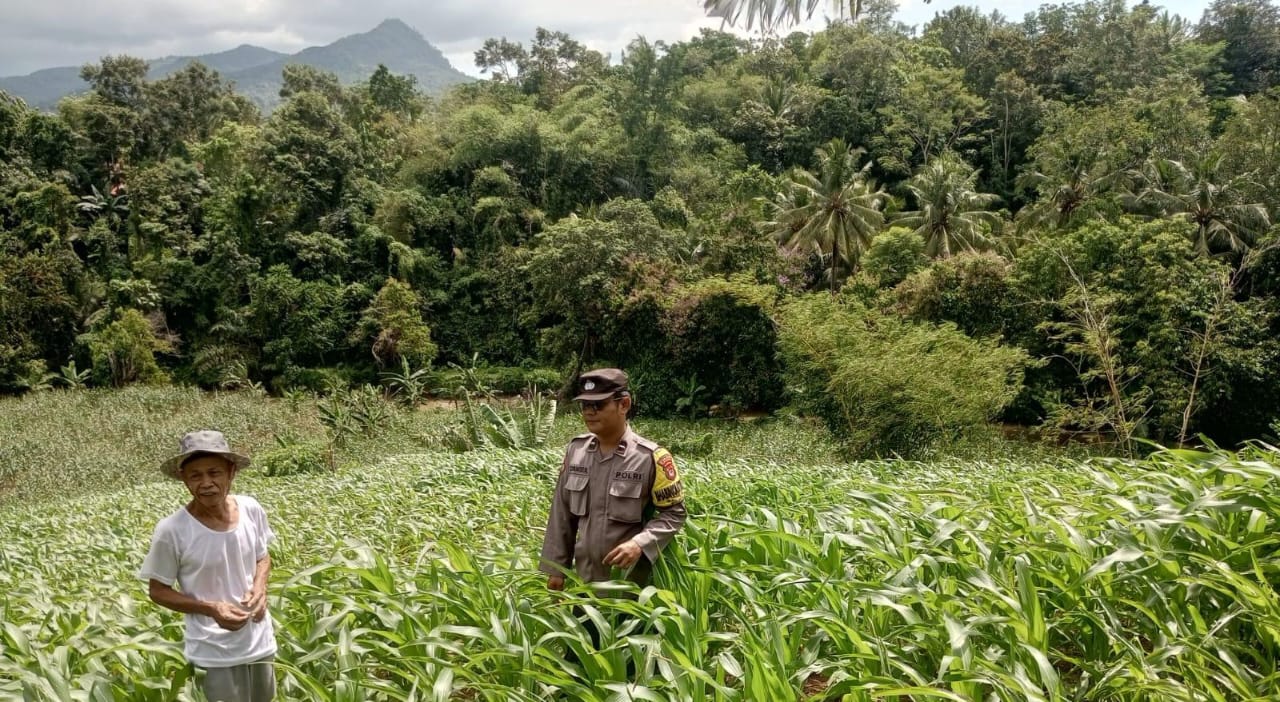 Monitoring Pertumbuhan Tanaman Jagung Polsek Anyar Sambangi Petani