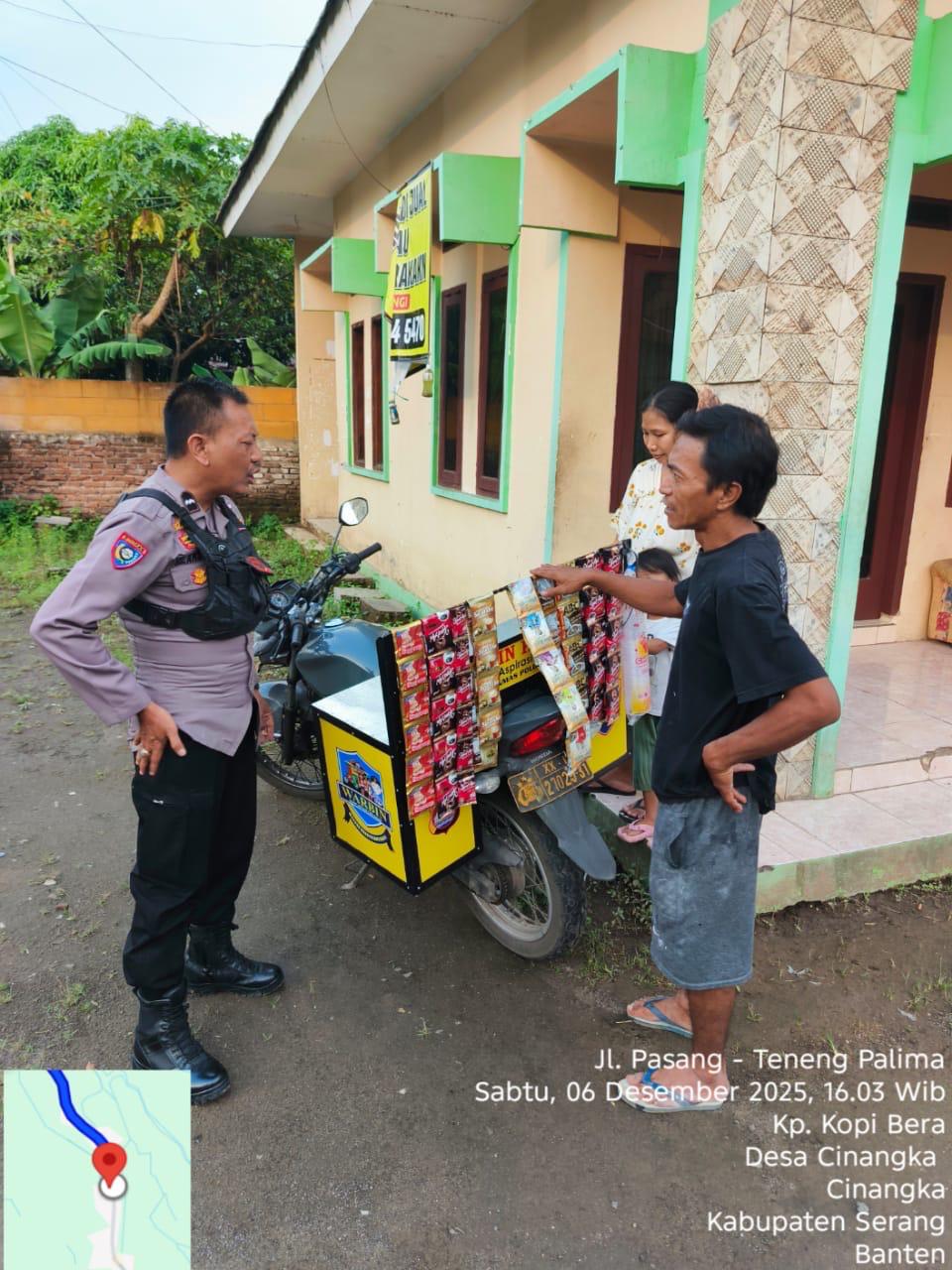 Polres Cilegon ~ Bhabinkamtibmas Polsek Cinangka Polres Cilegon Polda Banten Sambang dan silaturahmi dengan masyarakat merupakan salah satu tugas seorang bhabinkamtibmas untuk mengetahui situasi Kamtibmas Desa binaan dalam menjalin silaturahmi dengan Warga Ds Cinangka di Warung Bhabinkamtibmas, Sabtu (06/12/2025).