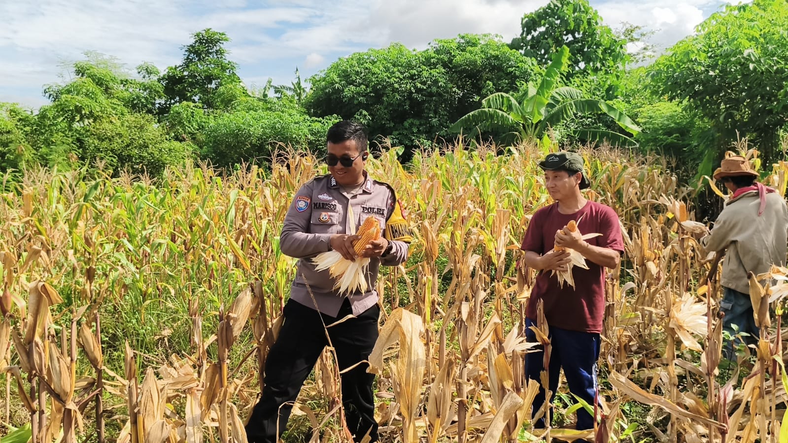 Cilegon - Polsek Ciwandan Polres Cilegon Polda Banten mendukung kegiatan panen jagung Hibrida hasil penanaman Kelompok Tani Kosambi di Kelurahan Samangraya Kecamatan Citqngkil, Kota Cilegon, Sabtu (13/12/2025).