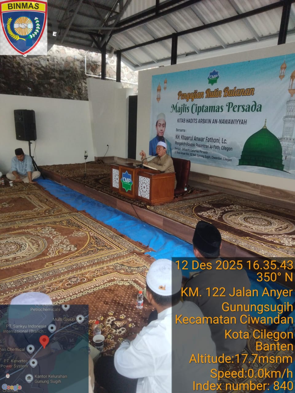 Cilegon - Bhabinkamtibmas Polsek Ciwandan Polres Cilegon Polda Banten menghadiri kegiatan Doa Bersama dan Dilanjutkan Pengajian Rutin dilingkungan Kelurahan Gunung Sugih Kecamatan Ciwandan Kota Cilegon, Sabtu (13/12/2025).
