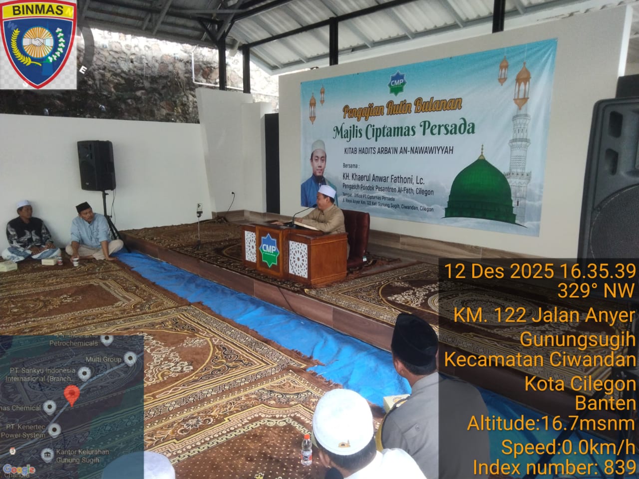 Cilegon - Bhabinkamtibmas Polsek Ciwandan Polres Cilegon Polda Banten menghadiri kegiatan Doa Bersama dan Dilanjutkan Pengajian Rutin dilingkungan Kelurahan Gunung Sugih Kecamatan Ciwandan Kota Cilegon, Sabtu (13/12/2025).