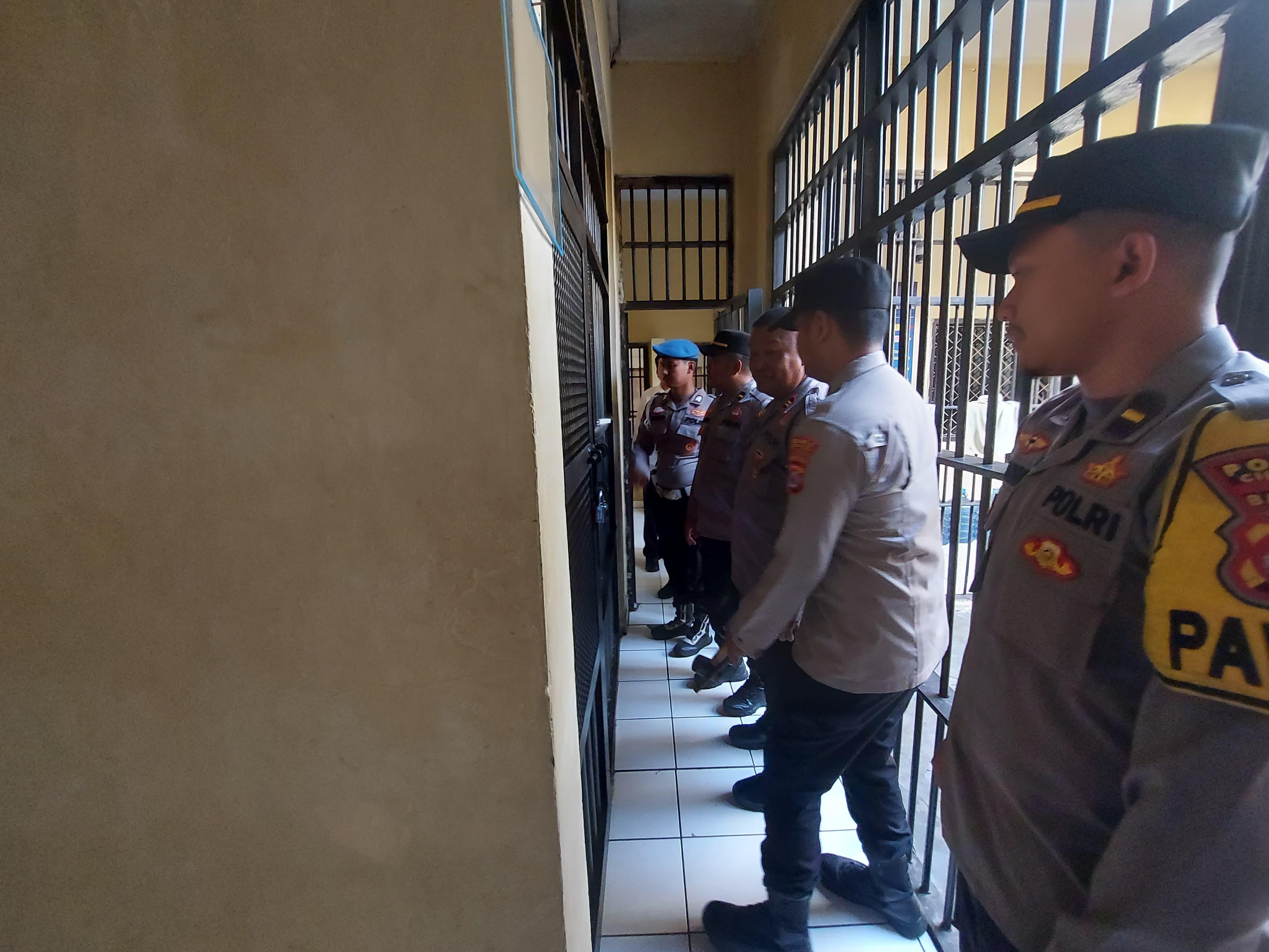 Pelaksanaan pengecekan ruangan tahanan Polres bersama piket Jaga tahanan mengecek secara keseluruhan kondisi ruang tahanan. Dalam pengecekan langsung kepada penghuni tahanan, menanyakan tentang kondisi dan keadaan para tahanan.