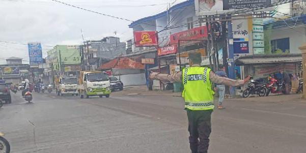 Urai Kendaraan Dengan Melakukan Pengaturan Lalu Lintas Oleh Polsek Anyar