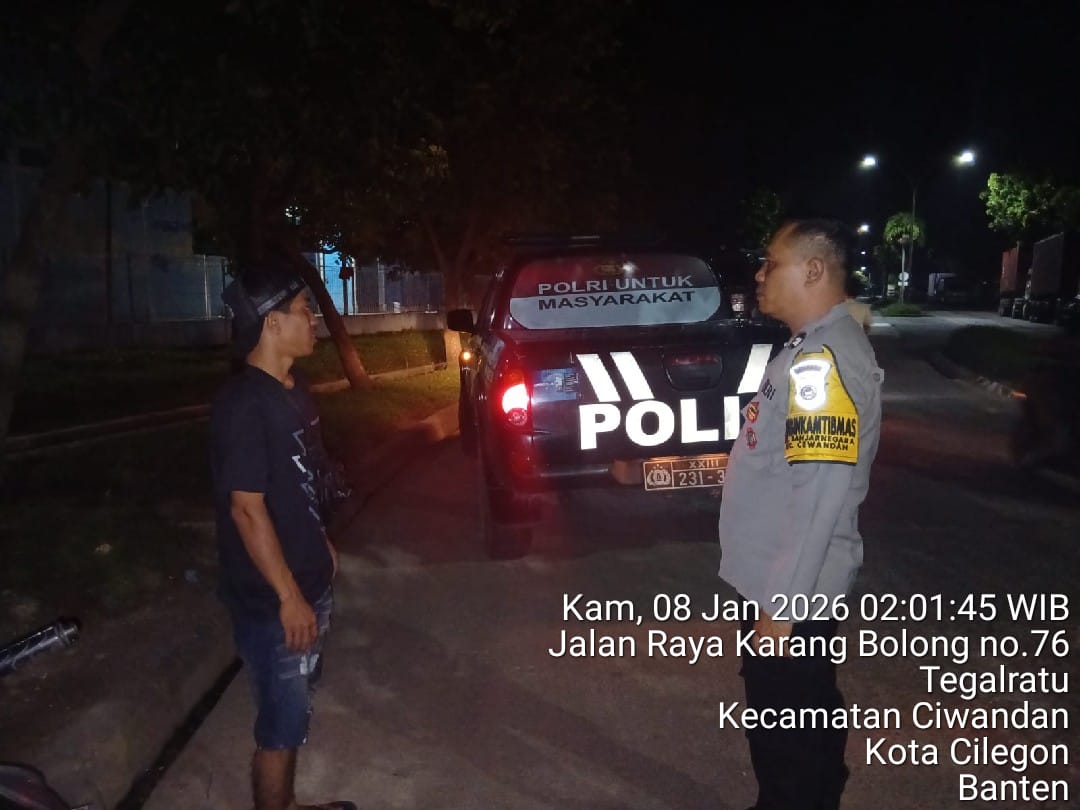 Cilegon - Dalam rangka menekan tindak kriminalitas serta untuk memberikan rasa aman dan nyaman kepada masyarakat terutama pada malam hari,Personil Polsek Ciwandan Polres Cilegon Polda Banten melakukan patroli malam hari di daerah-daerah yang rawan kriminalitas, Kamis (08/01/2026).