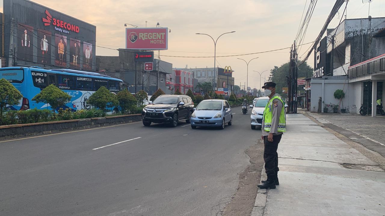 Berdasarkan pantauan di lokasi, petugas terlihat bersiaga di tepi jalan sambil mengawasi arus kendaraan yang melintas. Sejumlah kendaraan roda dua dan roda empat tampak ramai melintasi kawasan tersebut, yang merupakan area pertokoan dan perhotelan serta jalur strategis menuju pusat kota.