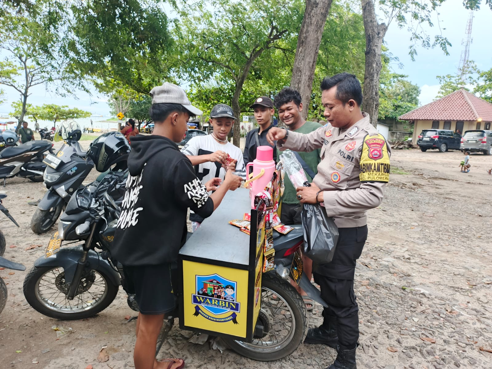 KASAT BINMAS MELAKUKAN KEGIATAN SAMBANG KE PANTAI SAAT HARI LIBUR ANTISIPASI TERJADINYA LAKA SAAT LIBURAN