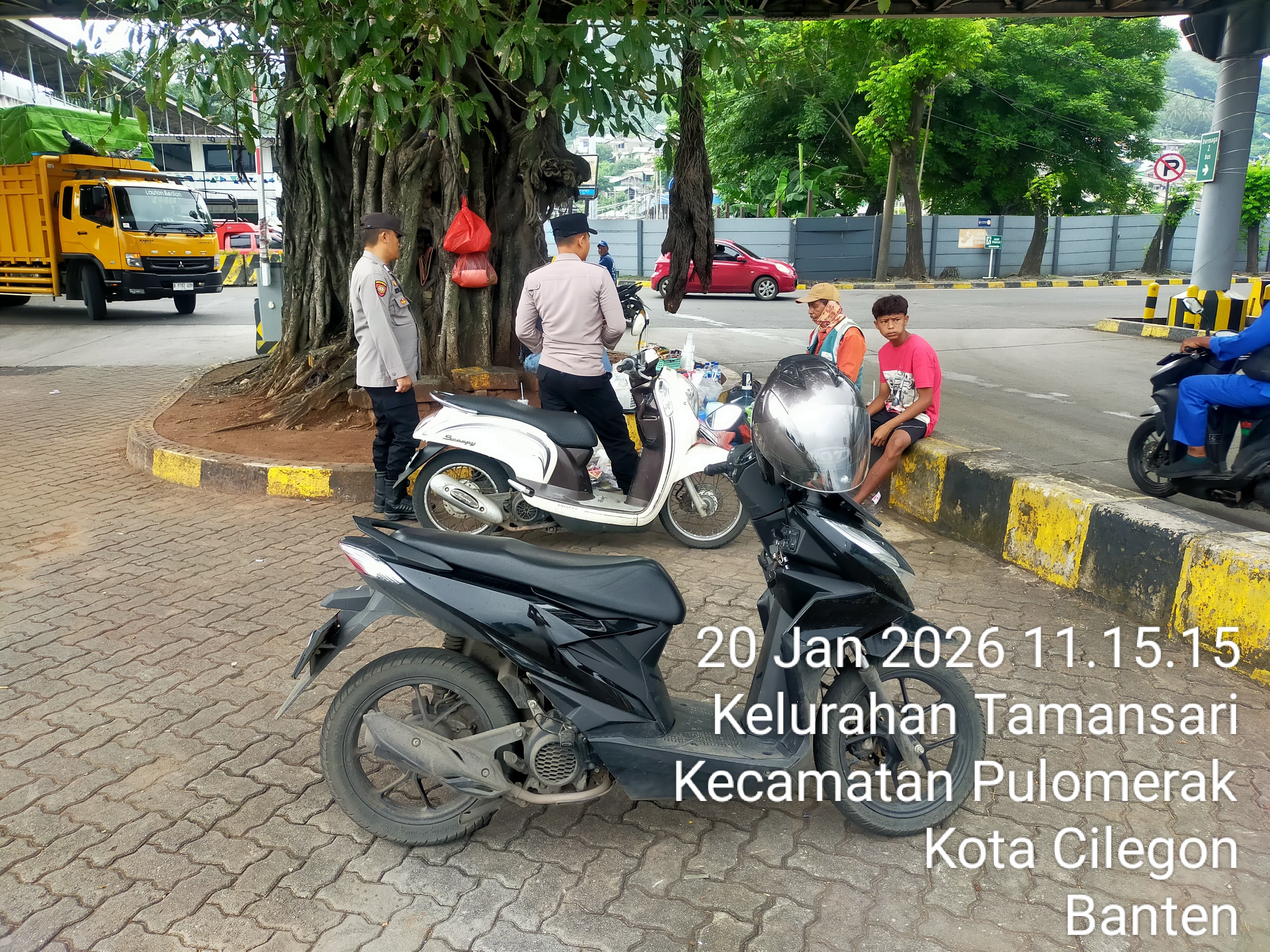 Cilegon - Personel Polsek Kskp Merak Polres Cilegon Polda Banten melaksanakan sambang dan patroli kawasan pelabuhan merak dalam rangka menjaga Harkamtibmas di Kawasan Pelabuhan Merak, Selasa  (20/01/2026).