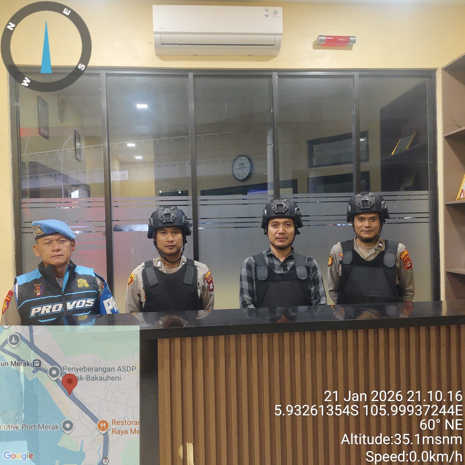 Cilegon - Personel piket jaga Polsek Kskp Merak Polres Cilgon Polda Banten melaksanakan siaga 1 Polsek pelaksanaan Sispam Mako oleh piket siaga dipimpin oleh Kspk Polsek Kskpy Merak Polres Cilegon Polda Banten, Rabu (21/01/2026).