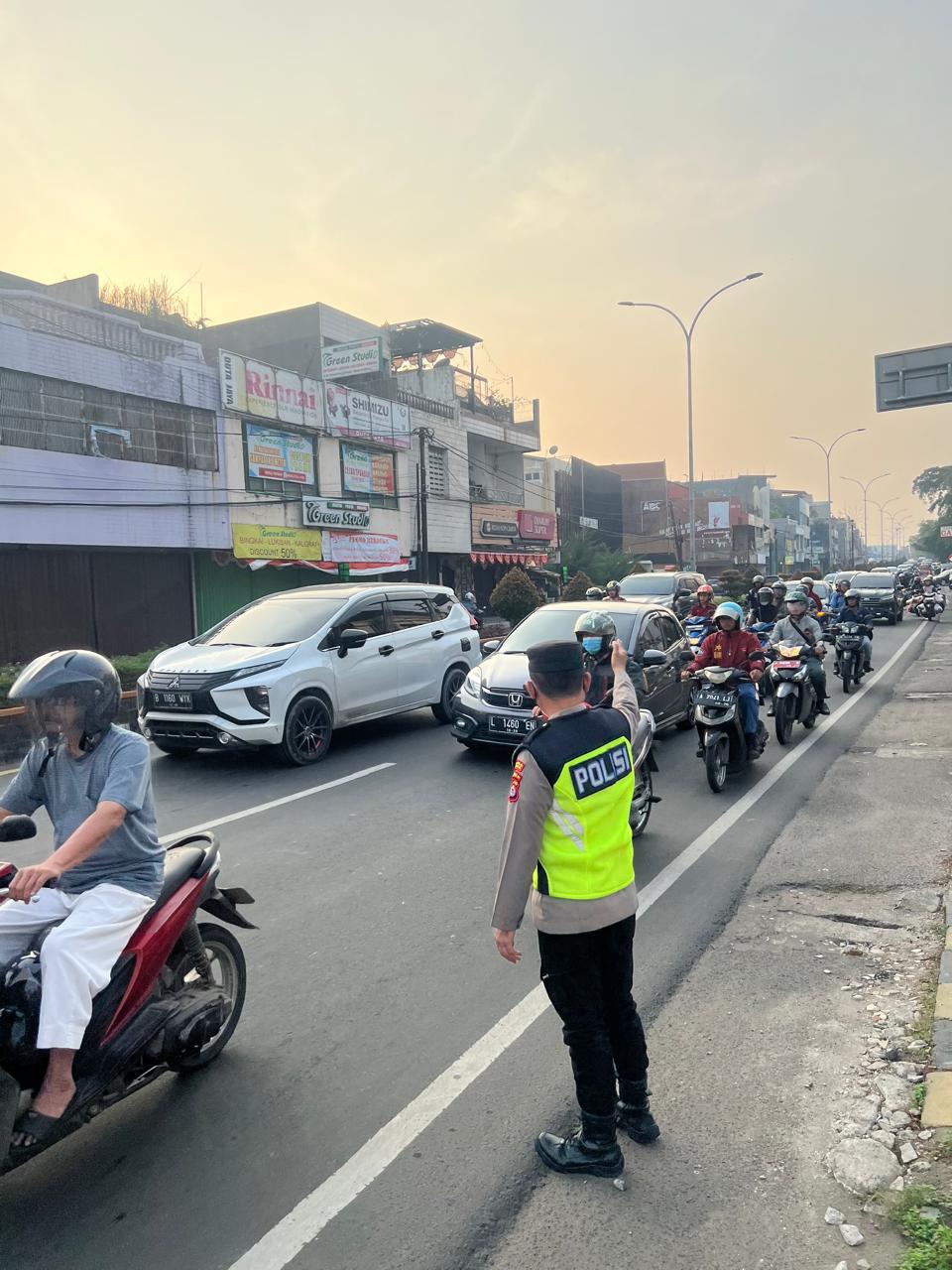 Brigpol Hadi sudrajat selaku Personil Siwas Polres Cilegon Melaksanakan Kegiatan Rutin pengaturan Arus Lalu Lintas di Jalur Protokol jalan Utama Kota Cilegon.