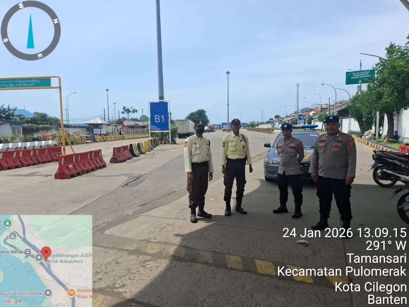 Cilegon - Personel Polsek Kskp Merak Polres Cilegon Polda Banten melaksanakan sambang dan patroli kawasan pelabuhan merak dalam rangka menjaga Harkamtibmas di Kawasan Pelabuhan Merak, Sabtu (24/01/2026).