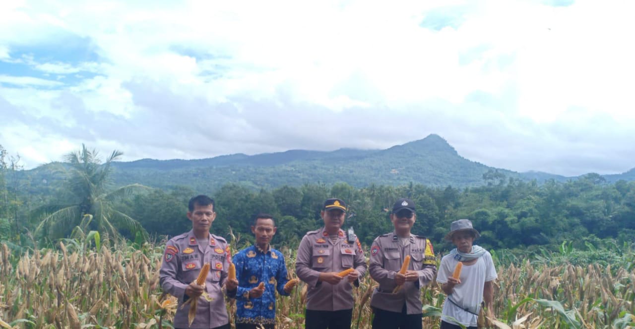 Giat Personil Polsek Anyar Lakukan Pendampingan Panen Jagung Kelompok Tani Desa Kewilayahan