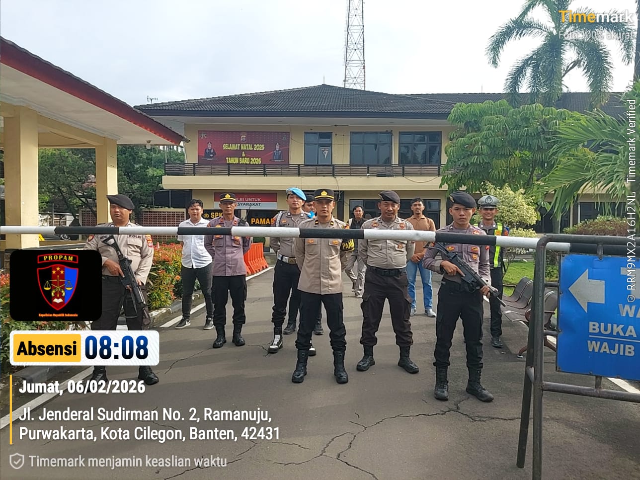 Cilegon, personel Satreskrim Polres Cilegon Polda Banten melaksanakan piket di penjagaan pintu masuk Polres Cilegon Polda Banten untuk memastikan mako Polres Cilegon dalam keadaan aman dan nyaman dalam melayani Masyarakat tanpa adanya gangguan kejahatan. Jumat (06/02/2026).