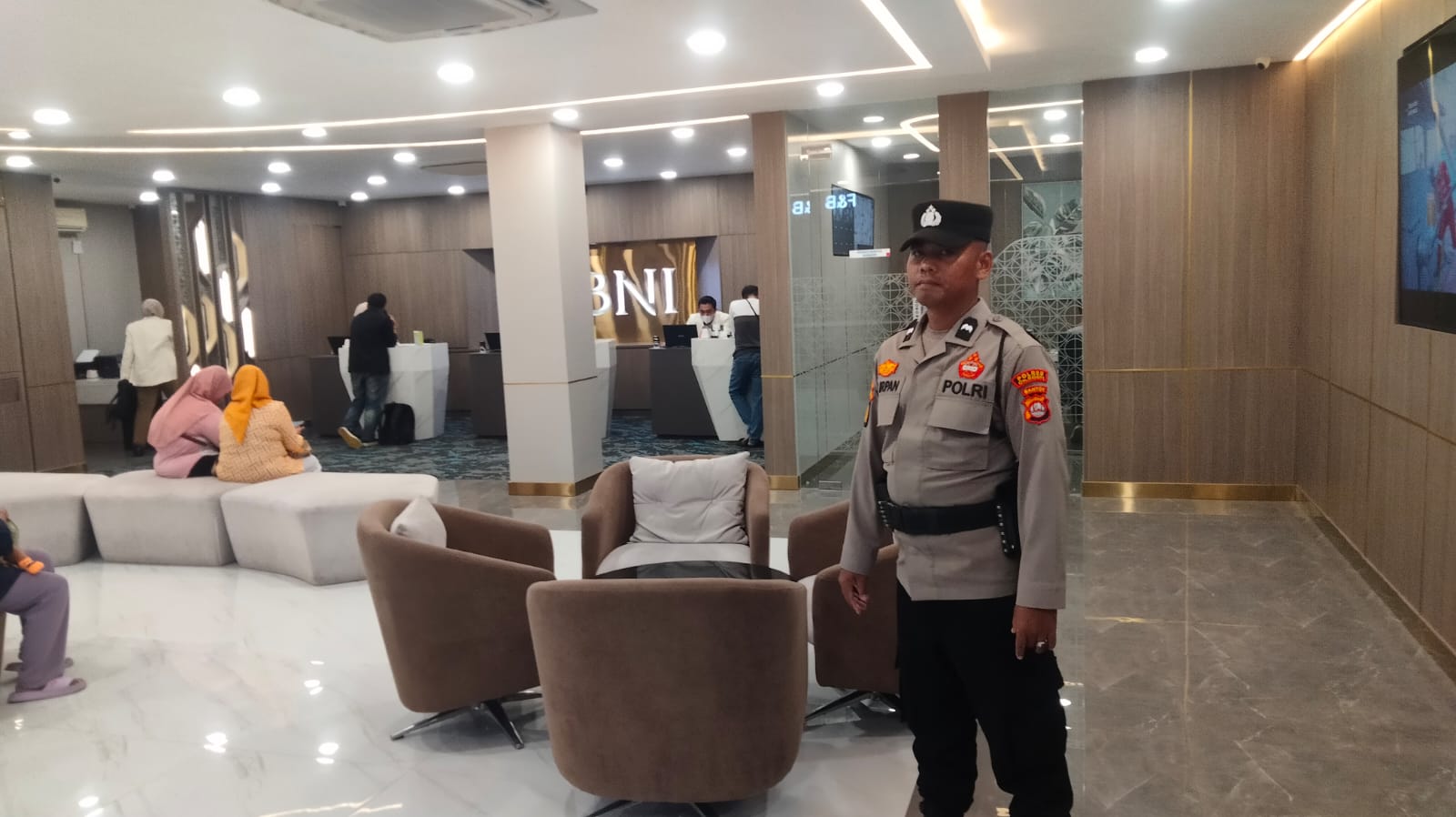 Pastikan kemanan dan kenyamanan nasabah, Satpamobvit Polres Cilegon hadir amankan Bank.