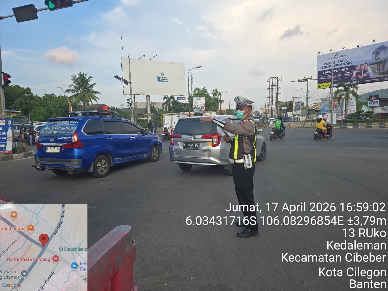 Cilegon – Polres Cilegon Polda Banten, Dalam Mewujudkan Aksi Nyata Pelayanan Kepada Masyarakat, Personil Satlantas Polres Cilegon Polda Banten Laksanakan PECAK (Pergelaran Cepat Anggota Kepolisian) Pengaturan Lalu lintas di wilayah perkotaaan terutama di titik rawan kemacetan dan kecelakaan lalu lintas, Jum’at (17/04/2026).