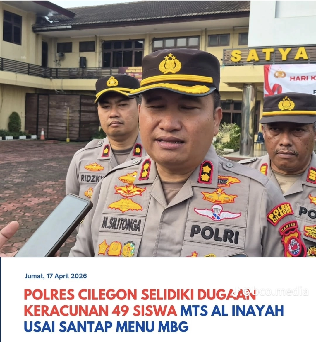 ​"Kami masih melakukan penyelidikan. Sampel makanan akan diperiksa melalui Dinas Kesehatan Kota Cilegon. Jika diperlukan, pemeriksaan akan dilanjutkan ke tingkat provinsi bahkan hingga Kementerian Kesehatan untuk memastikan keaslian hasil uji laboratorium," ujar AKBP Martua, Jum’at 17 April 2026.